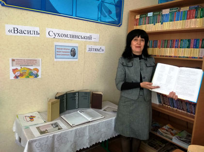 У шкільній бібліотеці оформлено тематичну виставку «Василь Сухомлинський- дітям», зроблено огляд літератури.