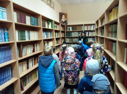 Нещодавно до нашої бібліотеки завітали дошкільнята групи "Золота рибка", які в майбутньому стануть читачами бібліотеки. Вихователь Кривошей І.О. та бібліотекар Ковальова О.С. провели для дітей екскурсію "скарбницею знань". Метою їхнього візиту було знайомство з казковими героями, читання казки «Петушок – солнца красного дружок» В. Письмака. Діти завітали в оселю казок, з цікавістю розглядали книжкові виставки та слухали розповідь бібліотекаря.